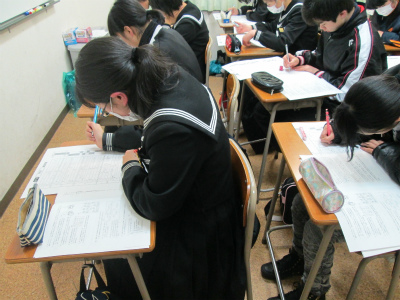 県立入試と同じ形式の模試(5教科+作文)を祝日に行いました。